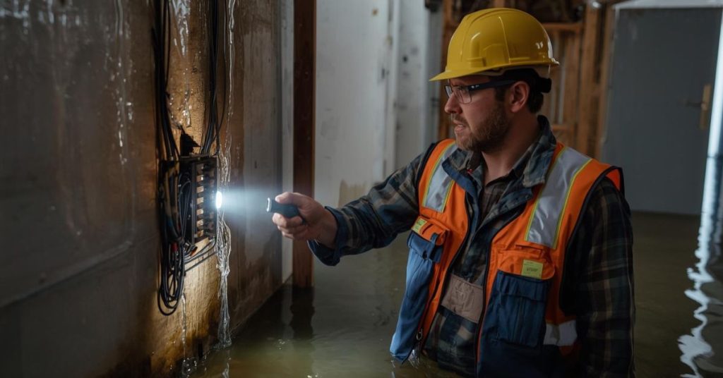 Waterlogged wiring can hold latent risk even after the water recedes.