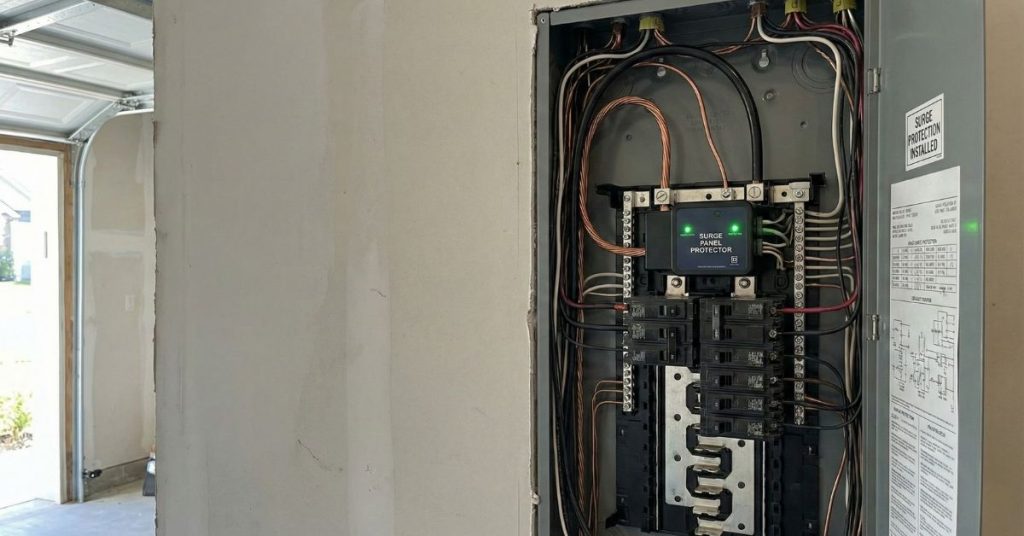 A whole-house surge protection system is installed directly into the home’s electrical panel to intercept excessive voltage before it reaches circuits and appliances. Unlike small plug-in surge strips, whole-home devices protect every outlet, appliance, and system connected to the electrical network.